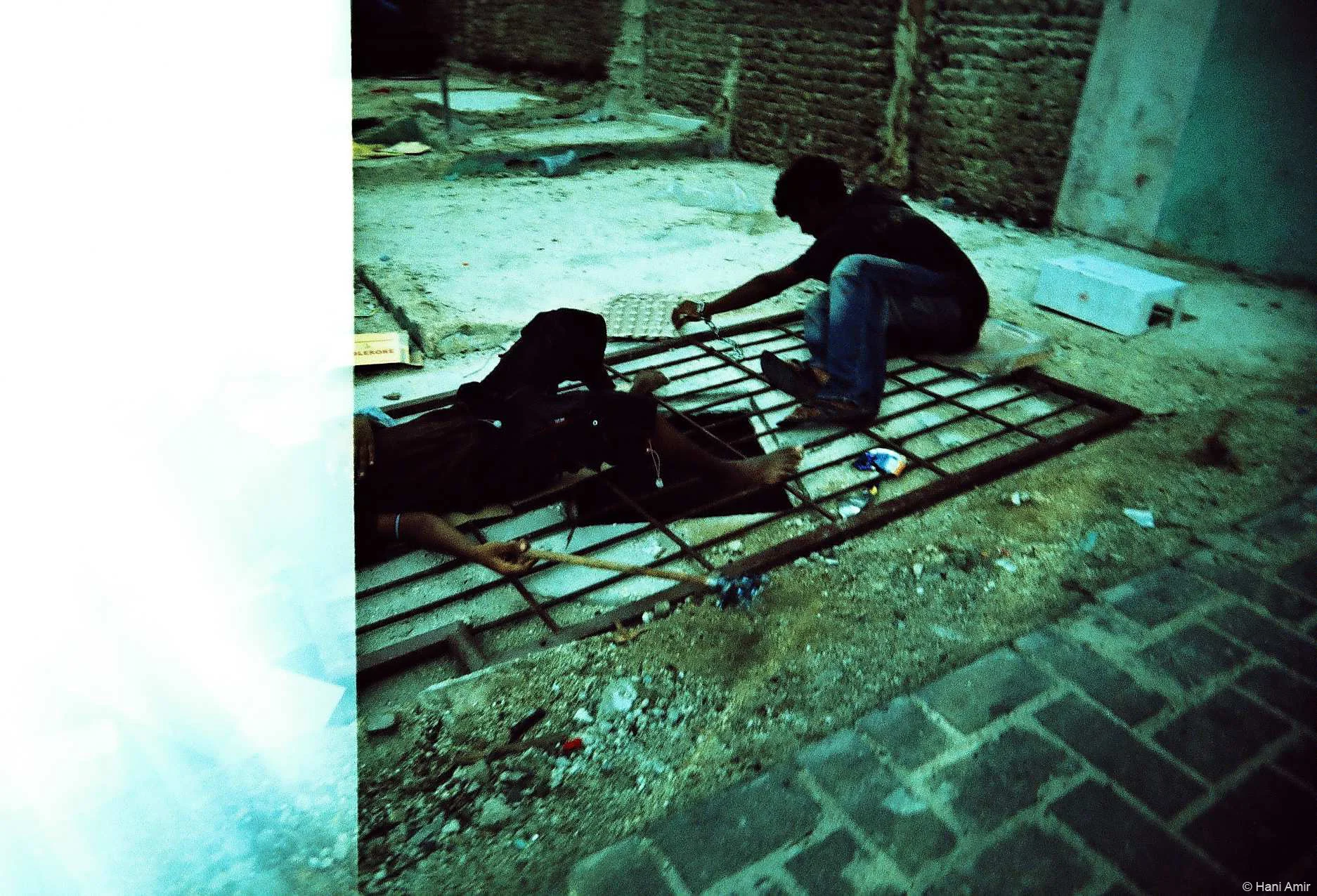 What happened next is hazy in my memory. I vaguely remember gritting my teeth and starting the motions of getting off my bike. Halfway through that I thought to look left behind my shoulder towards Muni Ufaa. A crowd of people were standing there who I had not even noticed before because of the shadows, and perhaps because I was focused more on the guy who just pissed on me. As I turned back towards the right I felt a heavy thud and then a crack on the back of the left side of my skull. A chunky piece of wood flies over my head and clanks down diagonally in front of me.