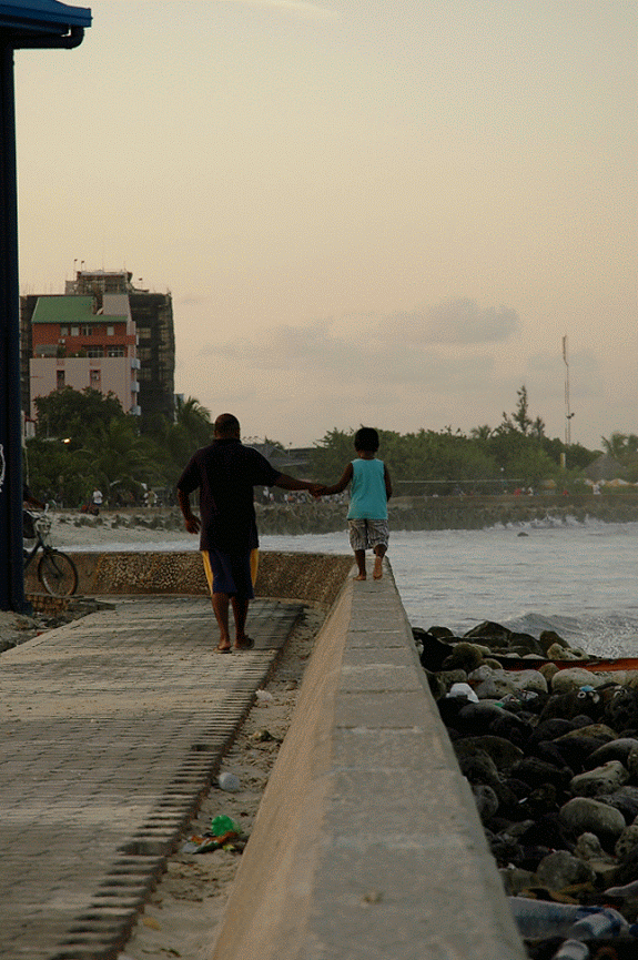 Here you could see far into the distance. Being on the side of Male’ away from Thilafushi, the air is always fresh. The sound of waves constantly crashing against the miniscule stretch of “beach” provides enough white noise to drown the howling of the city.