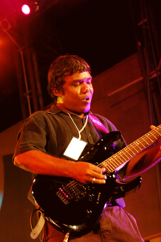 Ahmed “Fuloo” Nashid from Zero Degree Atoll tuning his guitar before the show begins | Resurrection, Malé City Carnival Stage | Nikon D70s | (2008)