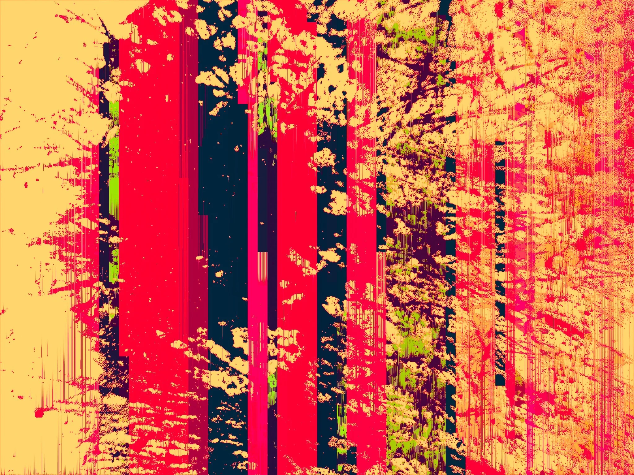There were a few steps to creating this image. The first element is a cross processed 35mm photograph (Vivitar Ultrawide & Slim + Ektachrome) that I took in 2008 in Malé City. This photograph was imported into Adobe Audition as an audio file and then subject to various audio effects. The output from that was then reduced to 950x1024 pixels. This was then imported into pixaki (an iOS pixel art app) where I went over the entire image, making it into purely black and white. This was then exported at a higher resolution to produce this final image.