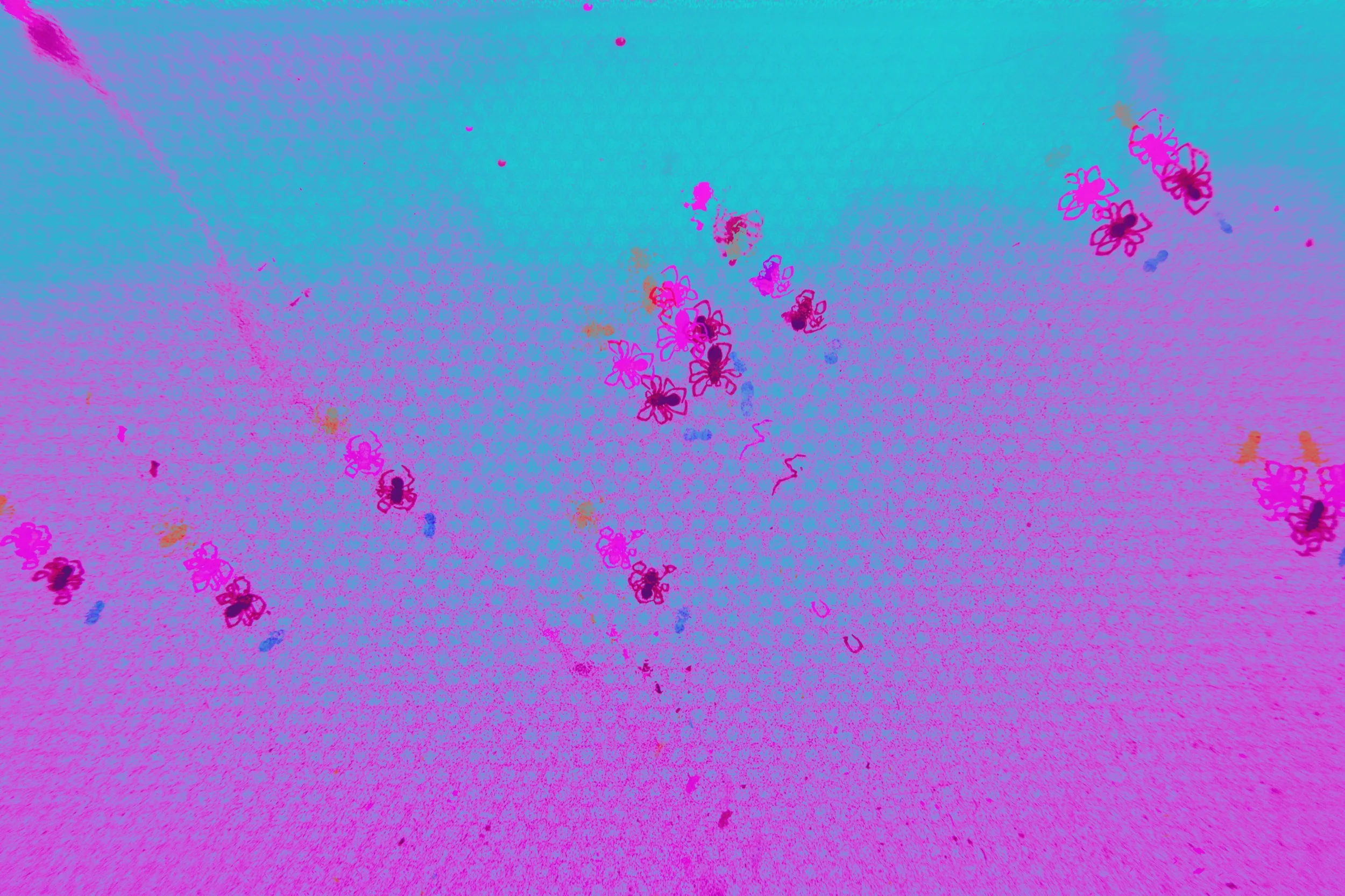 Soft sugar pearls scanned with a digital flatbed scanner. The distortions are from the motion of the beads across the scanner beam.